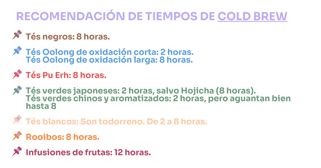 - A partir de las 4 horas de cold brew, el té frío empieza a tener más antioxidantes que el té hecho en agua caliente.