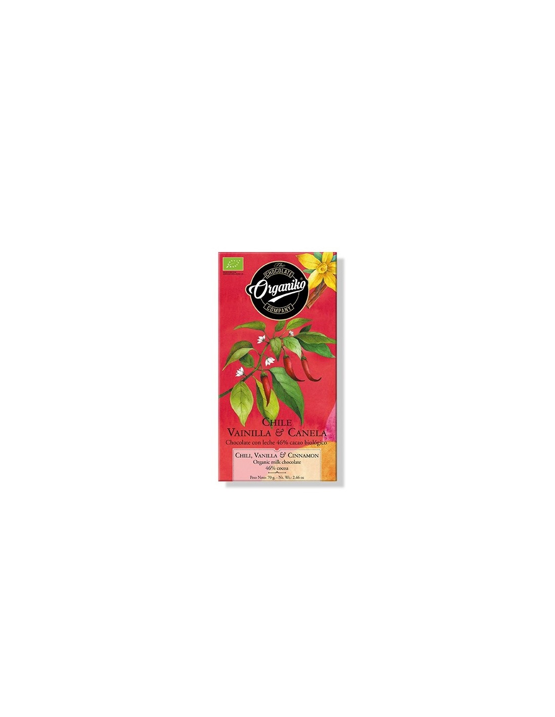 Este delicioso chocolate de ingredientes ecológicos combina con maestría la dulzura de de la vainilla y la canela con un atrevido toque picante de chili. Te encantará si amas los sabores especiados y un buen chocolate cremoso.